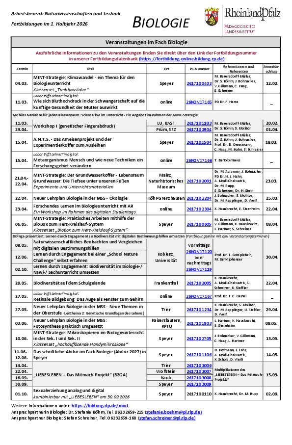 Die aktuellen Fortbildungsplakate, speziell für Biologie, sind hier zum Download bereitgestellt.
