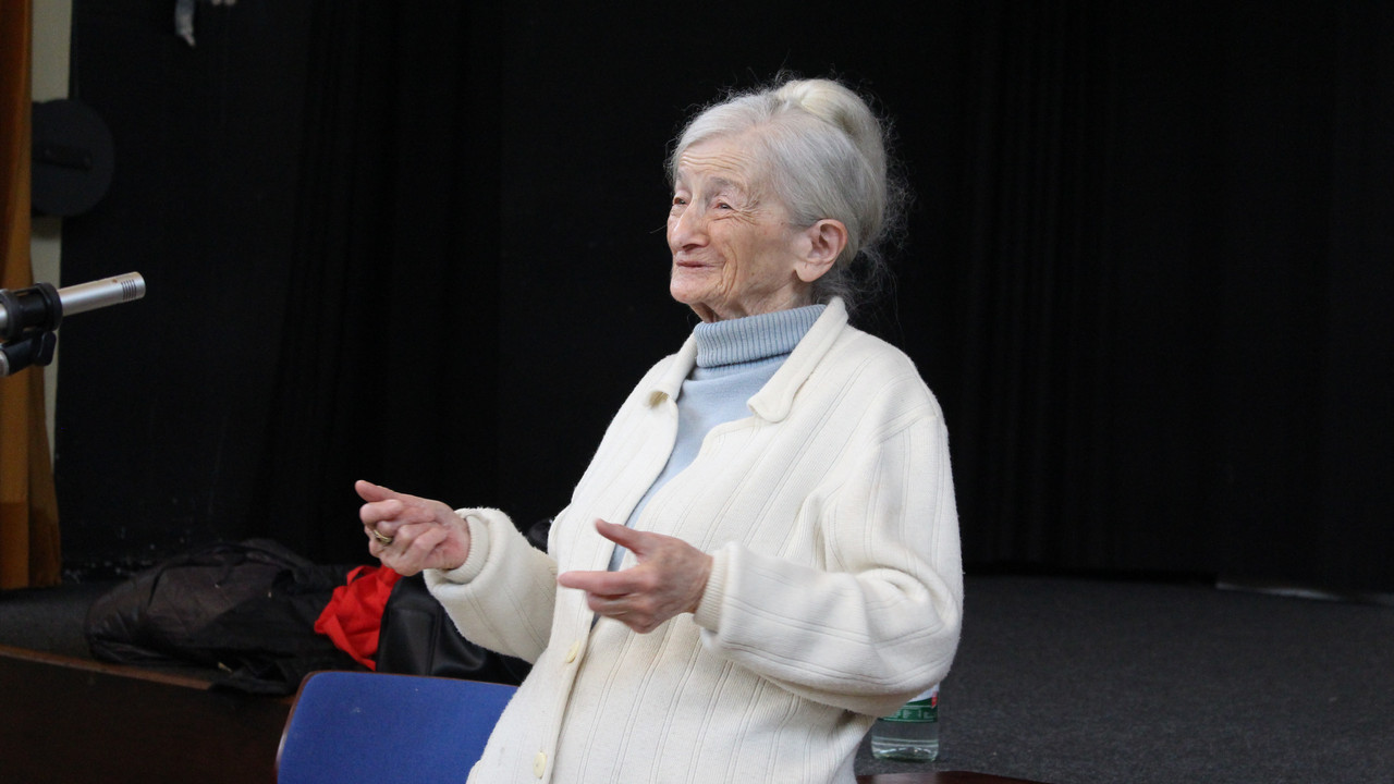 „Ich erzähle meine Geschichte nicht für das was war, sondern für das, was sein wird – eure Zukunft!“, betont Henriette Kretz. Immer wieder geht sie in den Dialog mit den Schülerinnen und Schülern. Am Ende ist ihre Erzählung ein leidenschaftlicher Appell gegen Rassismus und für das respektvolle Miteinander aller Menschen.