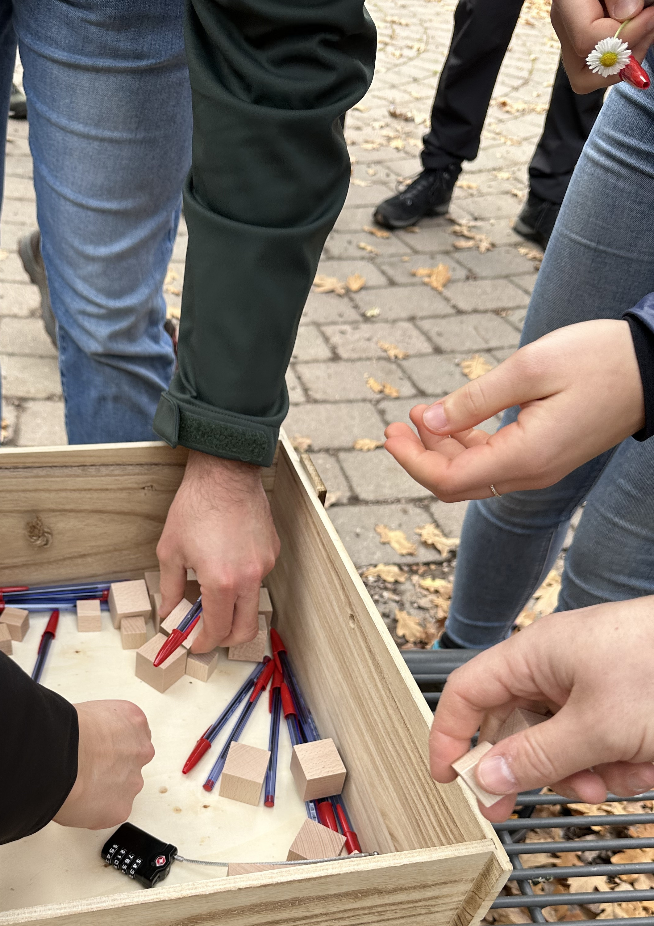 Danach startete der zweite Teil des Aktionstags. Es wurden mehrere Spiele zum Teambuilding angeboten, die die Seminarteilnehmerinnen und Seminarteilnehmer mitgebracht hatten. Die Gruppen wurden zufällig zusammengestellt, sodass sich die Gruppen F25 und H24 besser kennenlernen konnten. Mit Hilfe eines Laufzettels wurden die Spiele durchlaufen. Es wurden folgende Spiele angeboten: Wikingerschach, Cornhole, Bogenschießen, "Blind malen" oder "Male, was ich sage", Schwänzchenspiel, Sackloch und der Gordische Knoten. Alle Spiele wurden sehr positiv angenommen, wobei das Bogenschießen besonders beliebt war. Außerdem wurde das bekannte Schwänzchenspiel auch in digitaler Version mit einer Lasertagausstattung angeboten, dies war auch ein Highlight. Nach jeder Station wurden den Teilnehmern vier Reflexionsfragen im schulischen Kontext per QR-Code bereitgestellt. Gegen 14:45 Uhr wurde der Aktionstag ebenfalls per QR-Code kurz evaluiert und anschließend beendet.