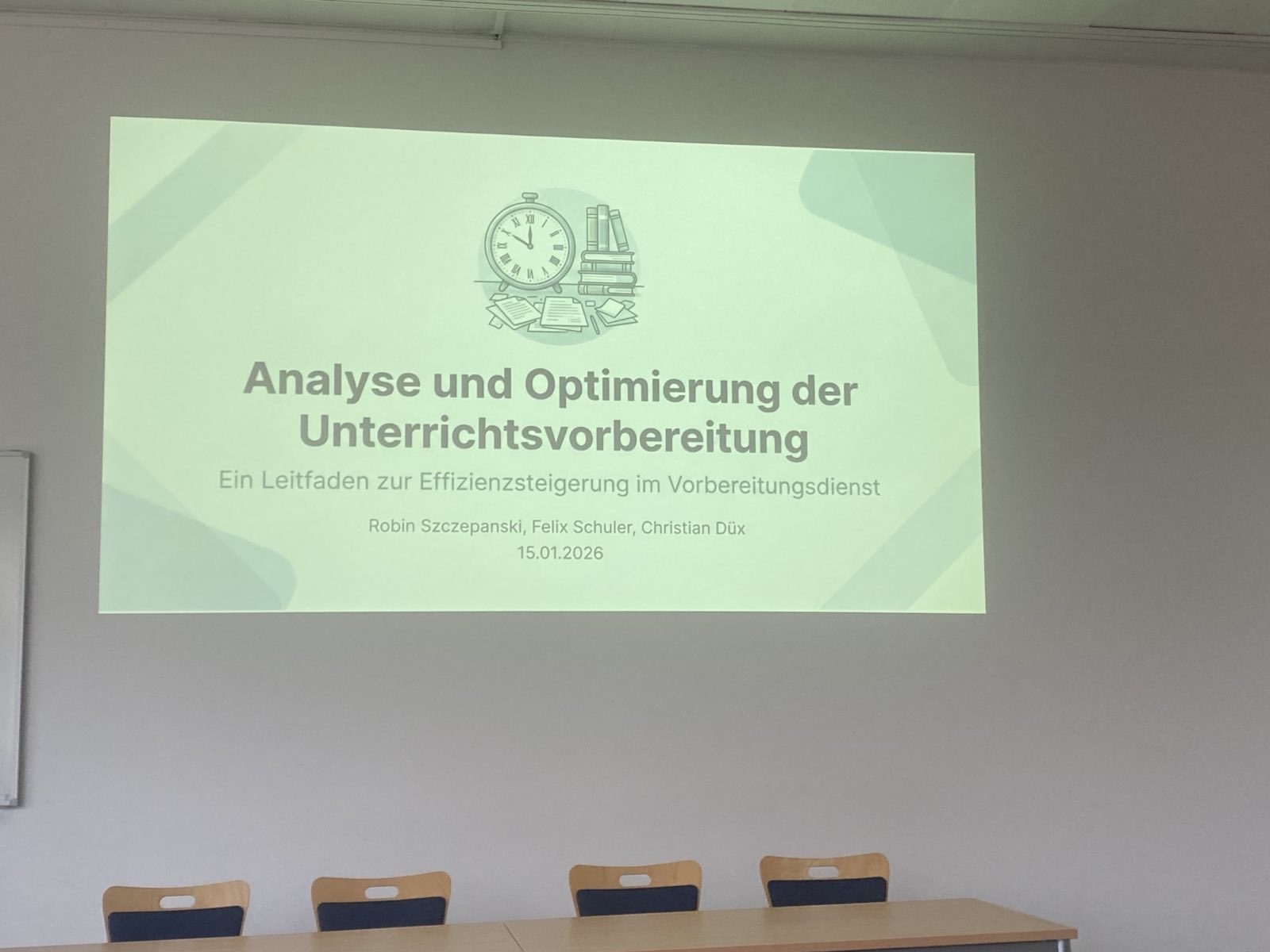 Im Projekt „Analyse und Optimierung der Unterrichtsvorbereitung“ setzte sich die Projekt-gruppe mit der Frage auseinander, wie Unterrichtsvorbereitung effizienter gestaltet werden kann, ohne dabei an Qualität zu verlieren. Es richtet sich generell an Lehrkräfte und nicht aus-schließlich an Lehramtsanwärter*innen.