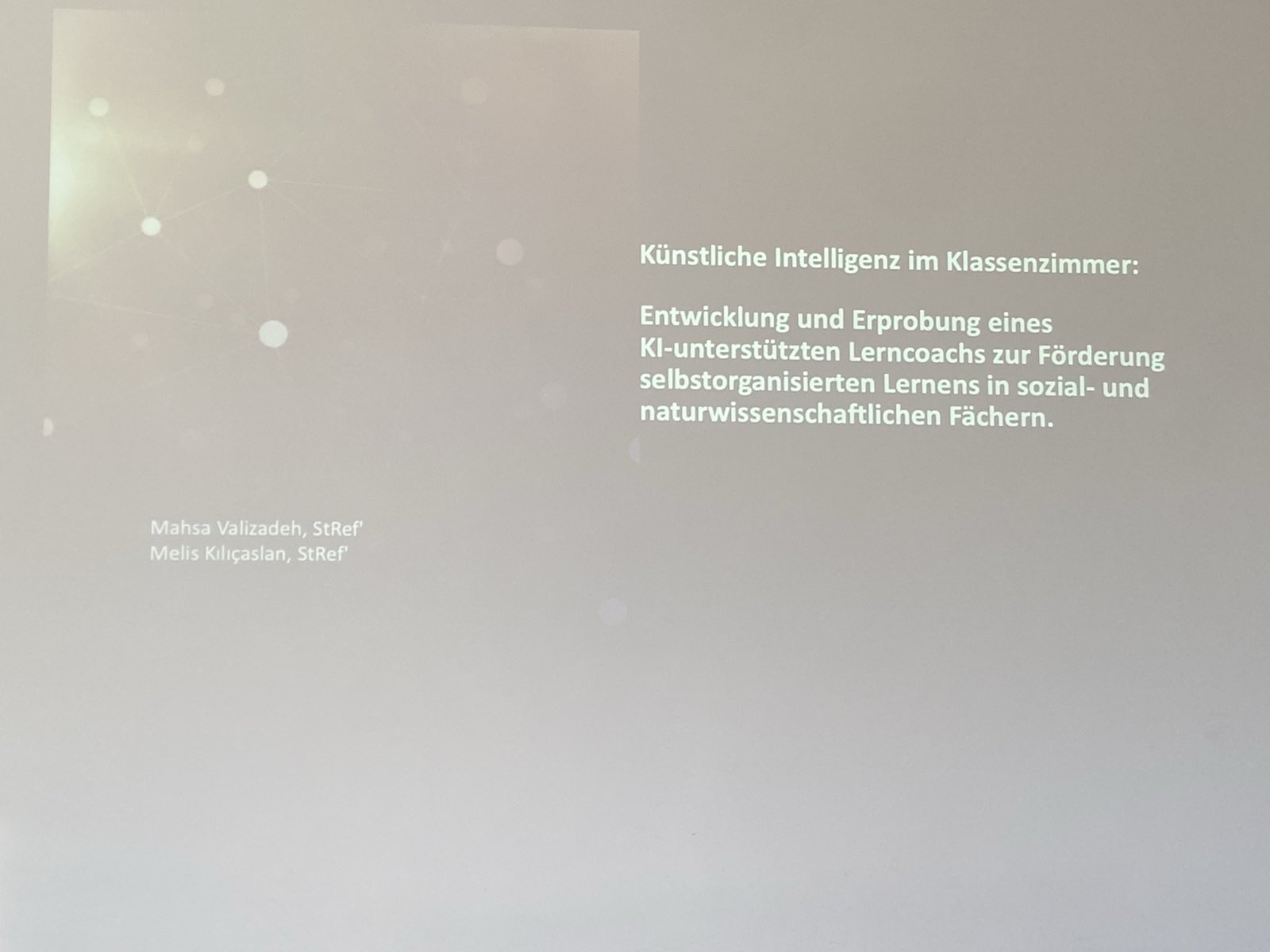 Der Lerncoach wurde praktisch mit Schüler*innen getestet und begleitete sie bei fachlichen Fragestellungen sowie bei der Strukturierung ihres Lernprozesses. In der Präsentation wurden sowohl die Funktionsweise des Lerncoachs als auch die Erfahrungen aus der praktischen Er-probung vorgestellt. Die Projektgruppe reflektierte dabei Chancen, insbesondere im Hinblick auf Individualisierung und Lernunterstützung, sowie mögliche Grenzen des KI-Einsatzes.