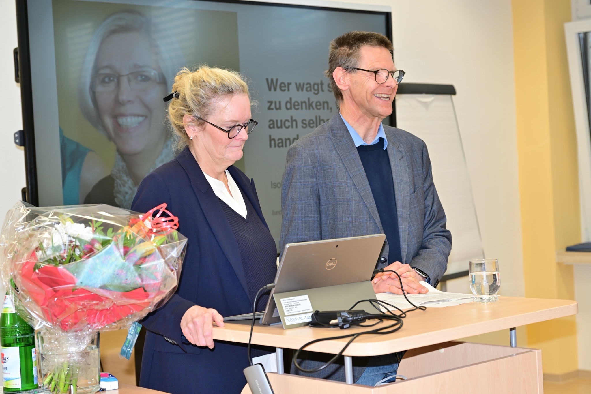 Mit Isolde Weimar verabschiedet das Studienseminar nicht nur eine stellvertretende Seminarleiterin, sondern eine prägende Persönlichkeit, Ideengeberin, Netzwerkerin und geschätzte Kollegin. Sie freut sich auf das, was kommt und lässt es sich nicht nehmen, nochmal auf den Spaß hinzuweisen, den sie bei ihrem bisherigen Wirken hatte.