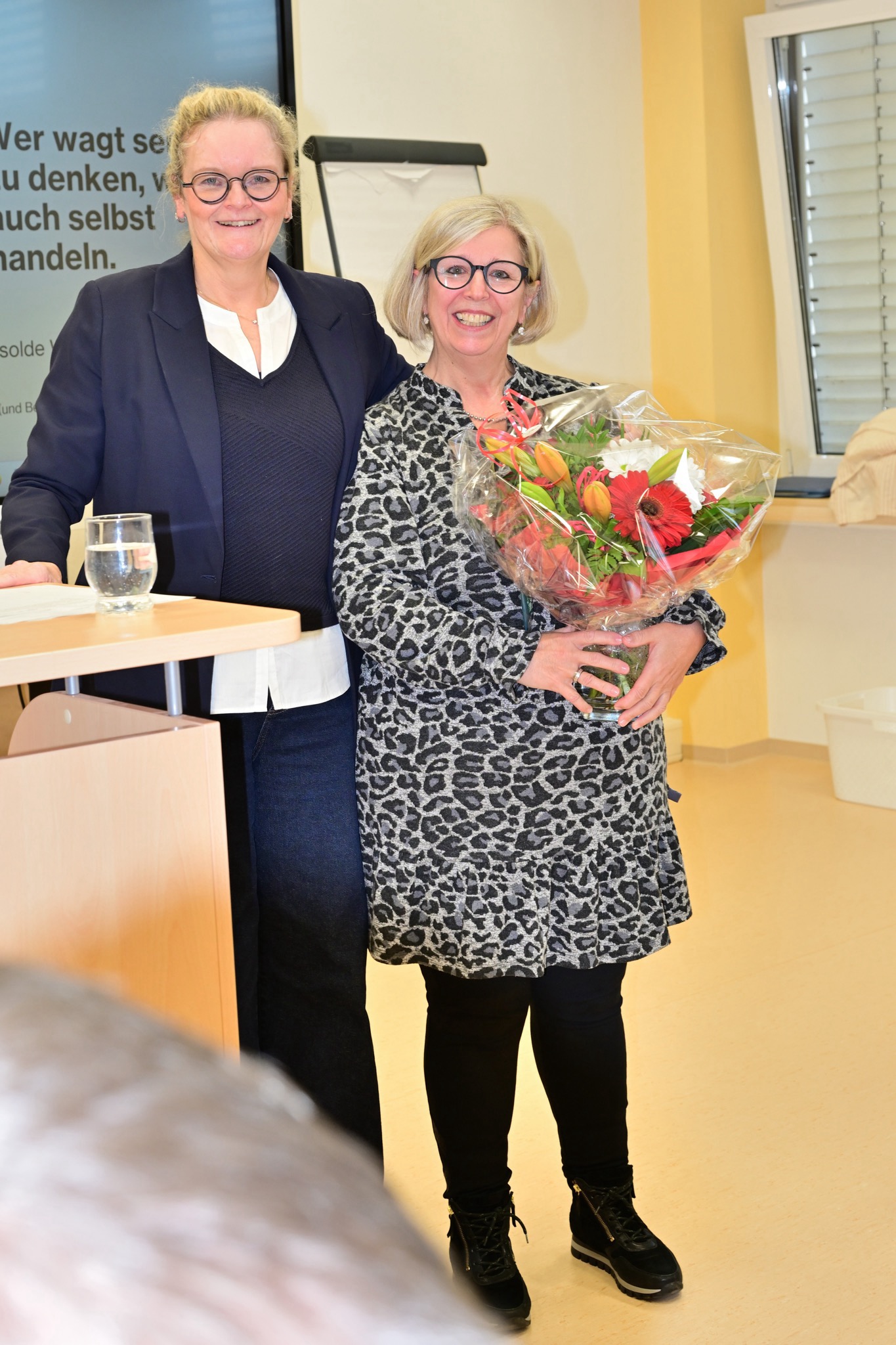 Thorsten Berkefeld, Seminarleiter der Teildienststelle Kaiserslautern, würdigte Isolde Weimar aus persönlicher Perspektive – als Mann in einem „Frauenteam“, wie er augenzwinkernd anmerkte. Besonders hob er ihre unterstützende Begleitung, ihre ausgeprägte Strukturiertheit und ihre Begeisterungsfähigkeit für neue Seminarprojekte hervor. Ihr Humor und ihre wertschätzende Art hätten die Zusammenarbeit bereichert.