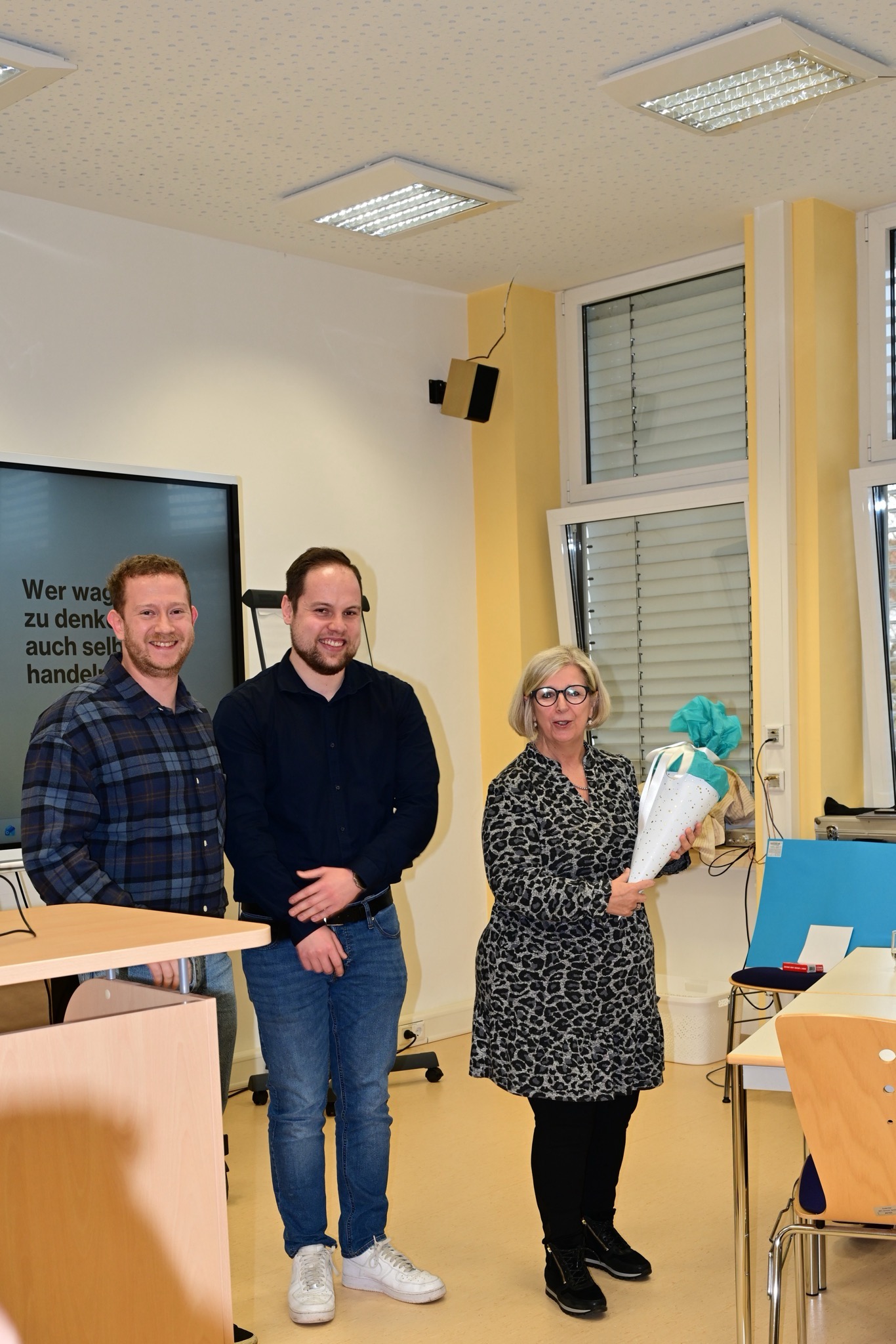 Der ÖPR des Kollegiums sorgte mit einem unterhaltsamen Rätsel für Spannung, das schließlich das gemeinsame Geschenk enthüllte: eine Weinprobe mit Übernachtung – Zeit zum Genießen, Entspannen und Anstoßen mit dem Kollegium auf einen neuen Lebensabschnitt.