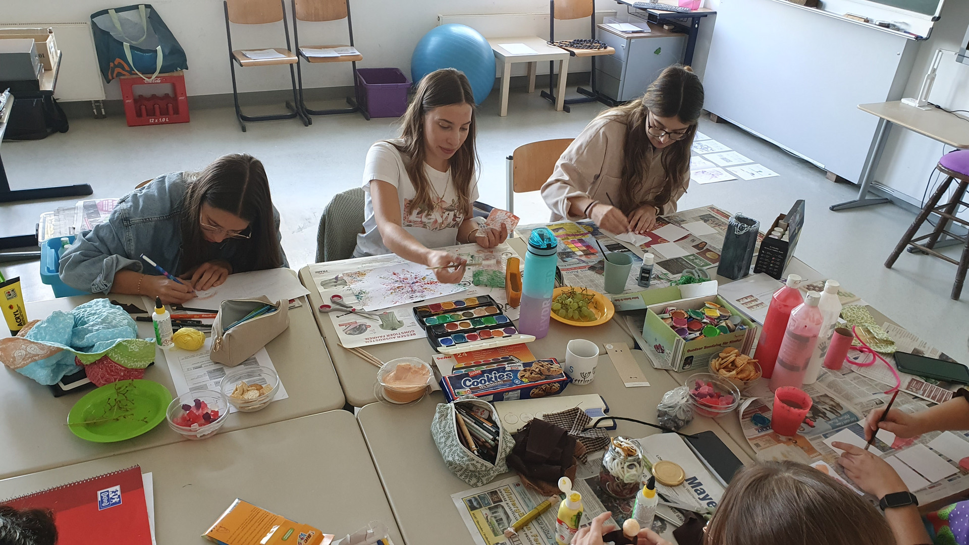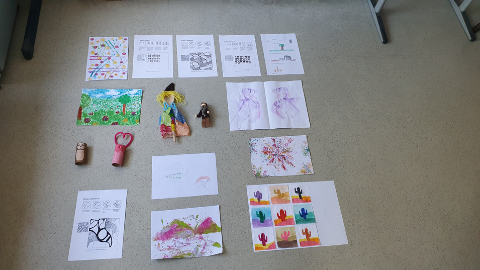 In einer Seminarveranstaltung am 18.09.2025 arbeiteten die Anwärterinnen und Anwärter mit Seminarleiter Carlo Groß an 10 Stationen zu den unterschiedlichen Erfahrungs- und Handlungsbereichen im Kunstunterricht. Hierbei stand die Auseinandersetzung mit der jeweiligen Kunsttechnik wie auch das persönliche Erleben der künstlerischen Betätigung im Vordergrund. Darüber hinaus sollte auch ein möglicher Einsatz der einzelnen Aufgaben in den eigenen Lerngruppen mitbedacht und reflektiert werden. Ein wichtiger Teil der Seminarveranstaltung war eine Unterrichtsmitschau zur Gestaltung von Mosaiken im Römischen Reich, die in der Gruppe intensiv beraten wurde. Die motivierten Künstlerinnen und Künstler konnten an diesem Seminartag ihrer Kreativität freien Lauf lassen und waren mit Freude dabei.