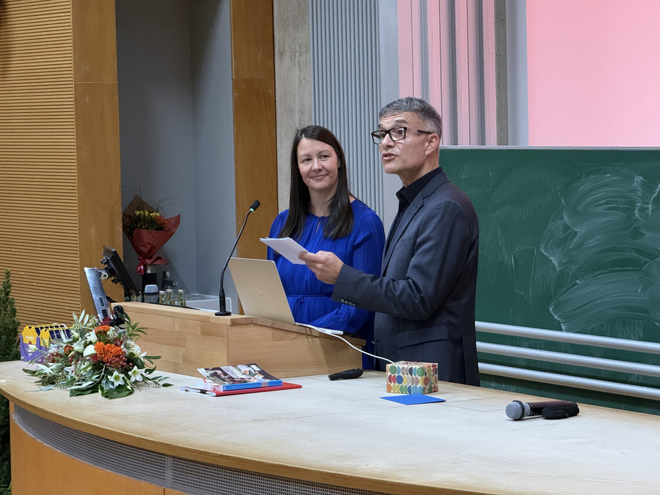 Der Leiter unseres Studienseminars, Carlo Groß, betonte in seinem gemeinsam mit Frau Prof.in Dr.in Anja Schiepe-Tiska (Zentrum für Lehrerbildung) gesprochenen Grußwort die Bedeutung der Gründung des Instituts für Förderpädagogik für die Qualitätssicherung in der Lehrkräftebildung und die Zusammenarbeit von Universität, Studienseminar und Schulen. Anschließend an die Grußworte folgten die Antrittsvorlesungen der vier bereits berufenen Professorinnen und Professoren des Instituts.