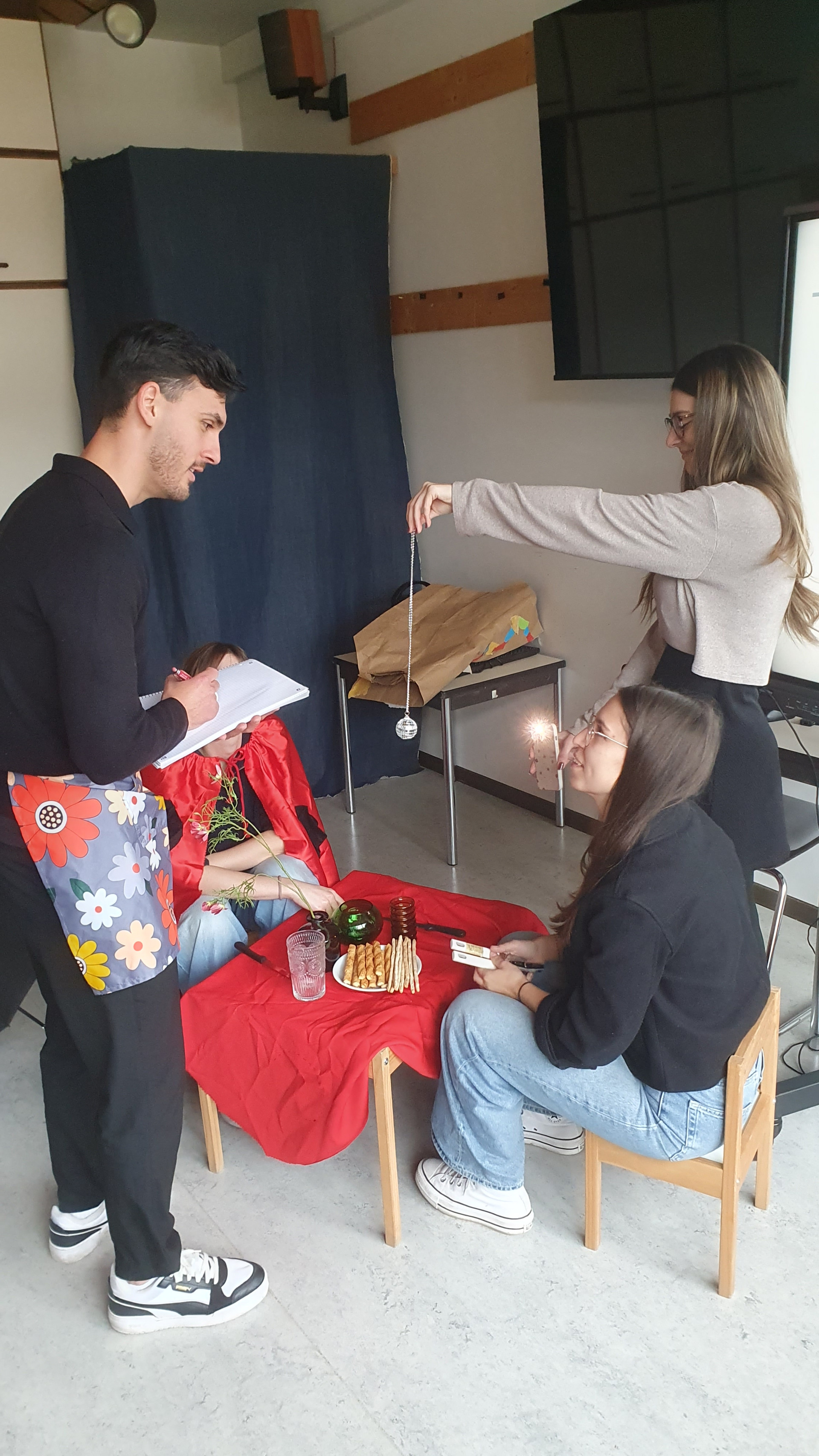 In einer dritten Veranstaltung zur Fachdidaktischen Ergänzung musisch-kreative Fächer mit Seminarleiter Carlo Groß stand am 4. Dezember 2025 das Theaterspiel im Mittelpunkt. Nach einer theoretischen Einführung in die Fachdidaktik und einer Unterrichtsmitschau zum Thema wurden verschiedene Formen des Darstellenden Spiels erprobt. Hierbei stand die Freude am Spiel und das eigene Ausprobieren im Vordergrund. Kurze Sequenzen wurden von den Seminarteilnehmenden aus dem Stehgreif improvisiert oder gemeinsam in der Gruppe vorbereitet und aufgeführt. Auch die Praxis des Schattentheaters konnte mit verschiedenen Objekten am Overhead-Projektor und mit Taschenlampen erprobt werden. Mit viel Humor und Freude wurde in der Veranstaltung in einer angenehm lockeren Atmosphäre intensiv gearbeitet.<o:p></o:p>