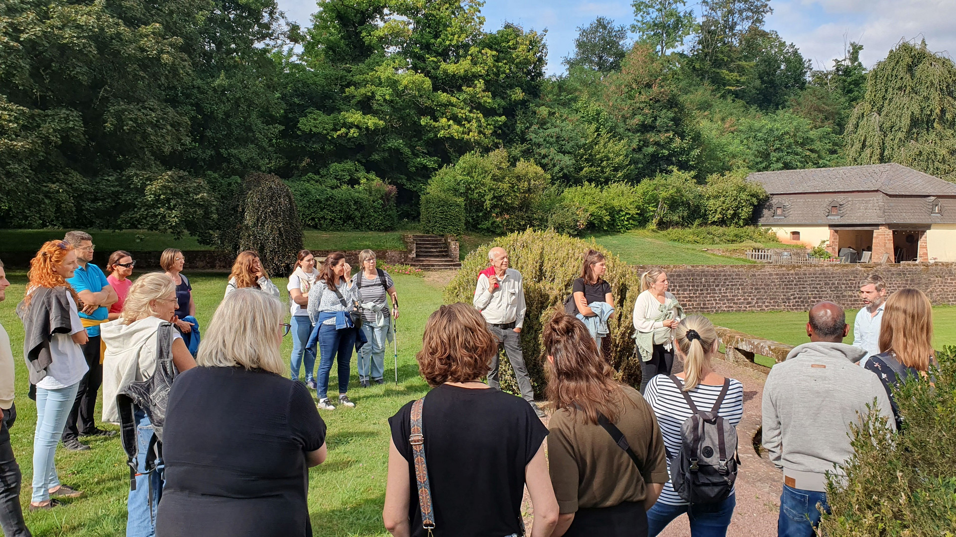 Am 22.08.2025 fand der diesjährige "soziale Tag" unseres Kollegiums statt. Nach besten Erinnerungen an einen gelungenen sozialen Tag im Jahr 2023 stellte Daniela Konz freundlicherweise erneut ihre Hütte zur Verfügung. Nach einem freudigen Wiedersehen mit ehemaligen Kolleginnen und Kollegen wanderten wir gemeinsam zum Schloss Föhren, wo uns der Schlossherr interessante Einblicke in die Räumlichkeiten und das beeindruckende Gelände gewährte. Nach dem Rückweg hatten wir uns eine Stärkung verdient und genossen das Pizza-Buffet sowie die mitgebrachten Leckereien. Der Abend fand am Lagerfeuer einen würdigen und gemütlichen Ausklang.