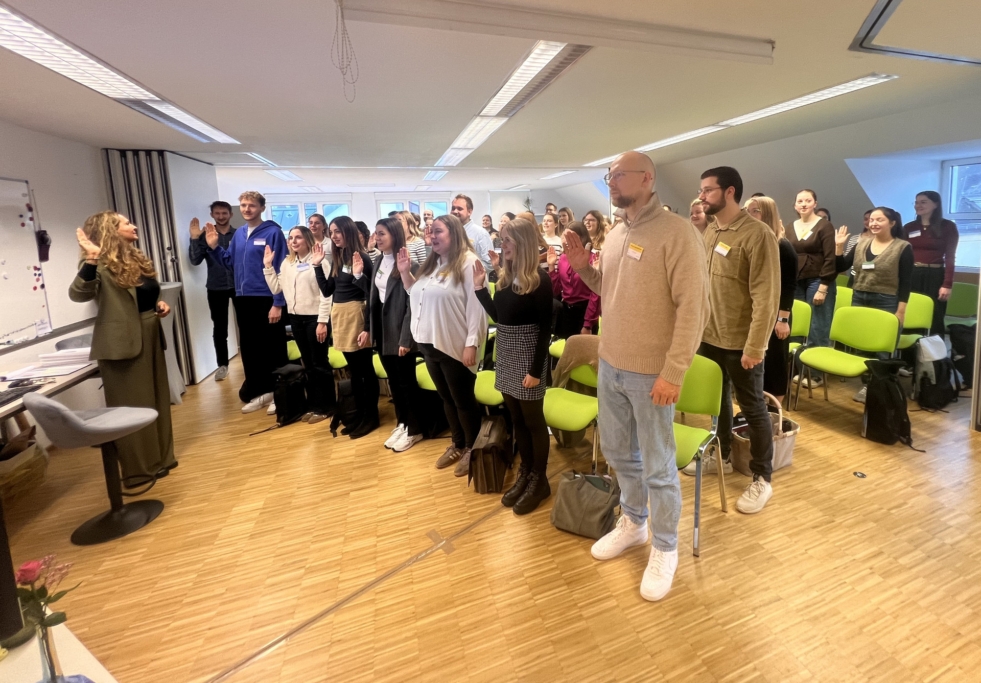 Da neben den 53 Anwärterinnen und Anwärtern vom 01. August 2024 bereits am 1. August 2025 weitere 30 Anwärterinnen und Anwärter VD 825 vereidigt wurden, wachsen die Ausbildungsgruppen mit der Vereidigung des Jahrgangs VD 126 am 15. Januar weiter zusammen. Während der Jahrgang VD 824 seinen Vorbereitungsdienst zum 31. Januar abschließt, werden die verbleibenden 86 Anwärterinnen und Anwärter jahrgangsübergreifend weiterhin eng zusammenarbeiten – in einem Seminar, das Austausch, gegenseitige Unterstützung und gemeinsames Lernen fördert.