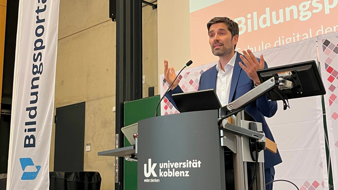 Vor rund 650 Teilnehmern, die sich zu dem großen Informations- und Netzwerktreffen mit Workshops, Arbeitsstationen und Präsentationen in der Koblenzer Universität getroffen hatten, erläuterte Teuber die Gründe für den Erfolg des Bildungsportals: „Es bietet einen Zugang zur digitalen Bildung aus einem Guss. Mit einem Passwort und wenigen Klicks gelangt man zu einer zentralen Oberfläche, von der alle relevanten Angebote angesteuert werden können – sei es die pädagogische Cloud, die Kommunikationsdienste Messenger sowie Videokonferenzsystem, das Digitale Bücherregal, die Lernplattform oder unser KI-Tool fobizz und noch einiges mehr. Das Ganze läuft nicht nur datensicher ab. Es ist vor allem, einfach, logisch, übersichtlich – ein Rundum-Wohlfühl-Paket für digitale Bildung.“